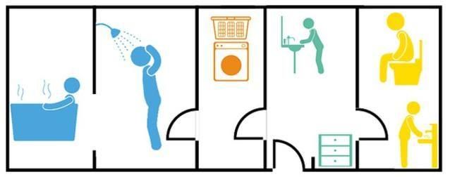 衛(wèi)生間,如何在一個有限的空間,放下馬桶、浴缸、臺盆,還要做到干濕分離,整潔,使用方便,采用通風都得好,這對衛(wèi)生間的空間布置就提出了更高的要求。