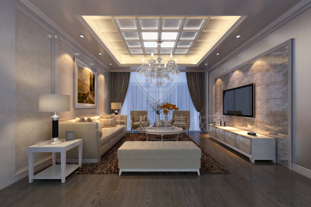 木紋地板與背景墻上的灰色相近,麻制沙發(fā)和矮凳起到過(guò)渡作用,并利用素色地墊作為點(diǎn)綴,循序漸進(jìn)地表現(xiàn)空間的色彩層次;略帶閃銀的吊頂、大氣的水晶燈優(yōu)雅而利落,是客廳更顯雅致溫馨。