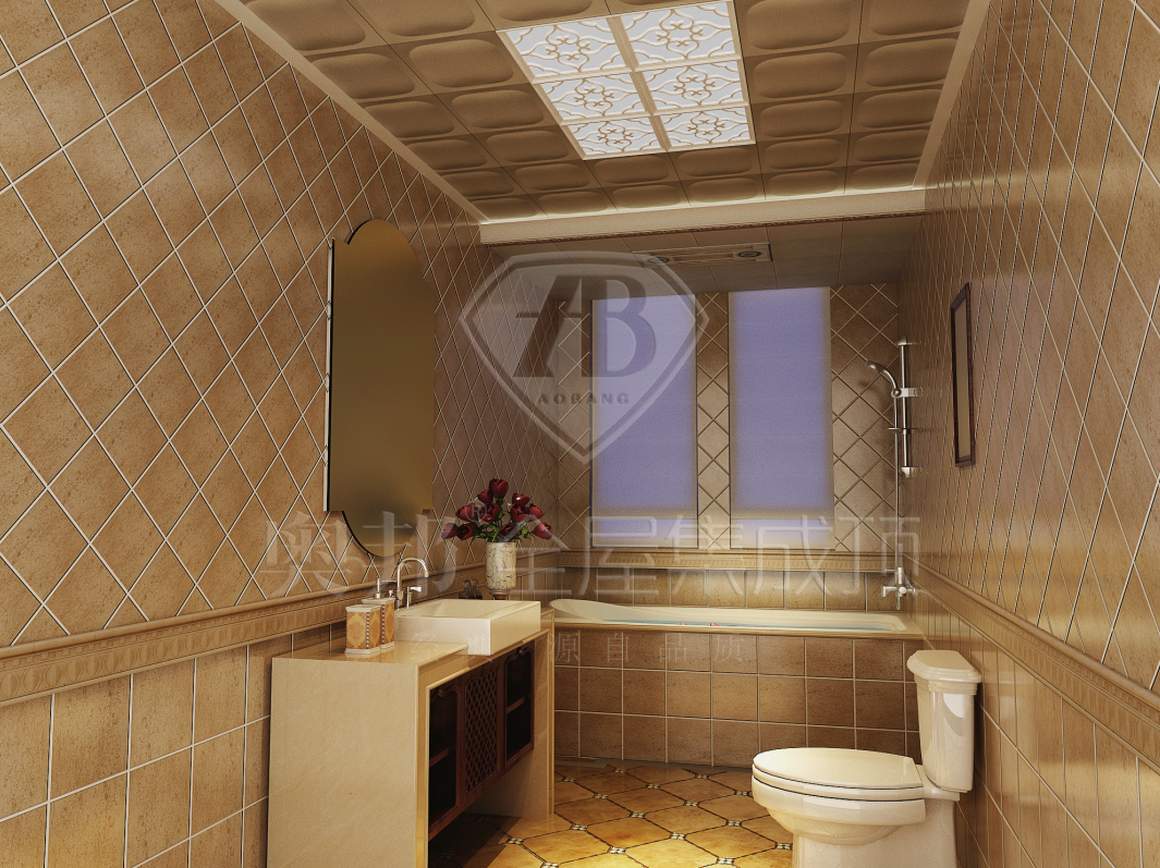 衛(wèi)浴間雖然面積有限,但是設(shè)計(jì)師通過(guò)設(shè)計(jì)來(lái)強(qiáng)化人性化需求,讓生活更顯質(zhì)感;利落的設(shè)計(jì)減少了生活上的麻煩,金屬色的吊頂與墻面遙相呼應(yīng),更顯檔次和質(zhì)感。