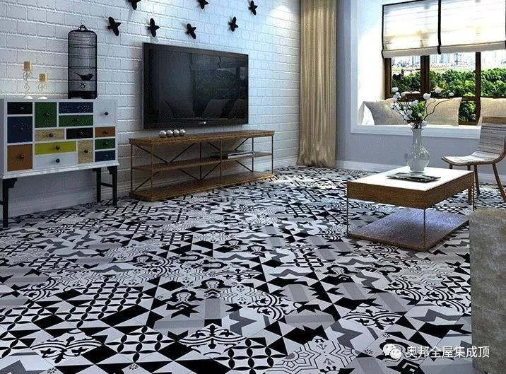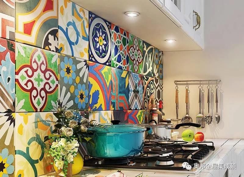 花磚除了有彩色,也有黑白灰的圖案,可以作為點綴,和其他材料進行拼接。用于廚房不僅顏值高,根據(jù)廚房的風格任意搭配。相同的花磚搭配出不一樣的感覺。